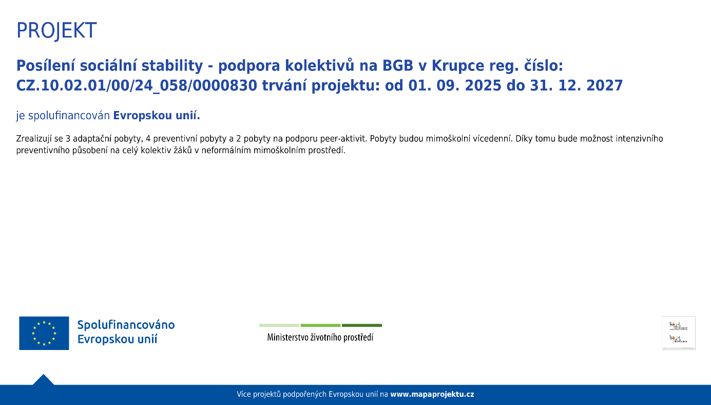 Projekt OP ST: Posílení sociální stability - podpora kolektivů na BGB v Krupce
