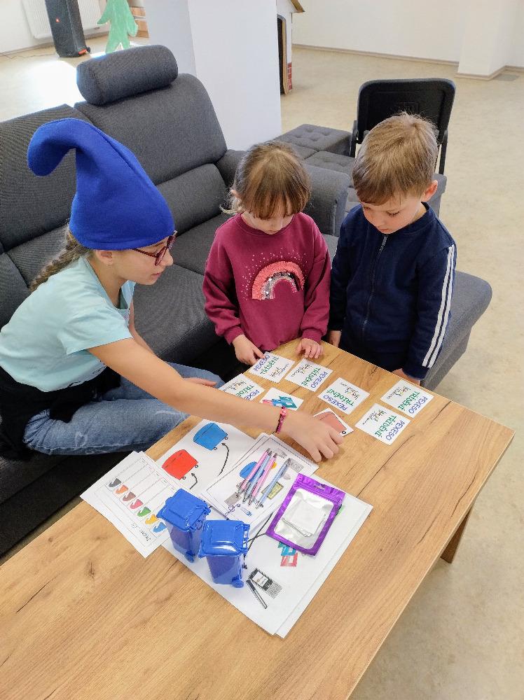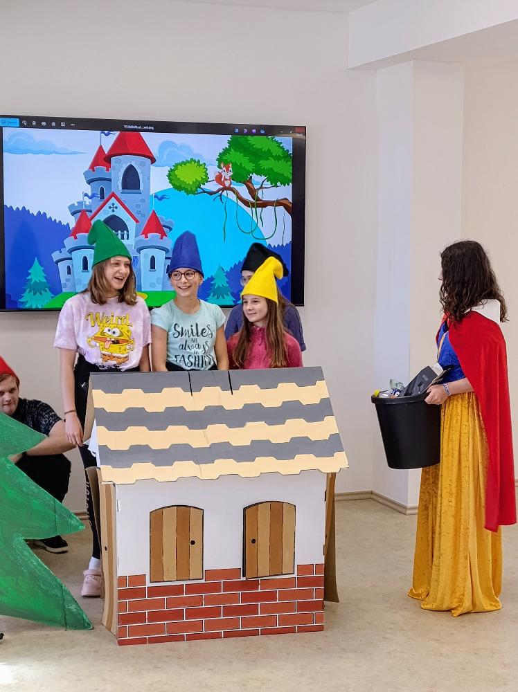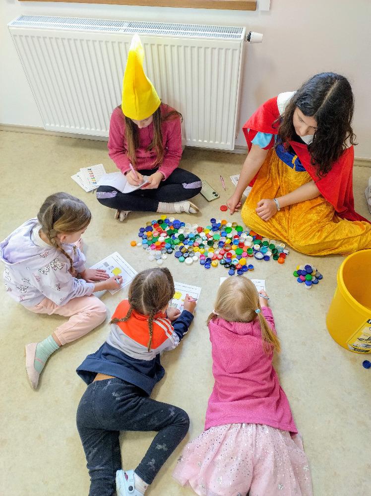 Členové Ekotýmu BGB vymysleli a zrealizovali na Den Země pro děti z naší MŠ pohádkové pásmo „Sněhurka a 7 kontejnerů“, které pojednává zábavnou a interaktivní formou o třídění, ale i o předcházení vzniku odpadu. Pásmo začíná pohádkou, dále děti plní na stanovištích u každého trpaslíka, jehož čepička znamená určitou barvu kontejneru, zadané úkoly.
